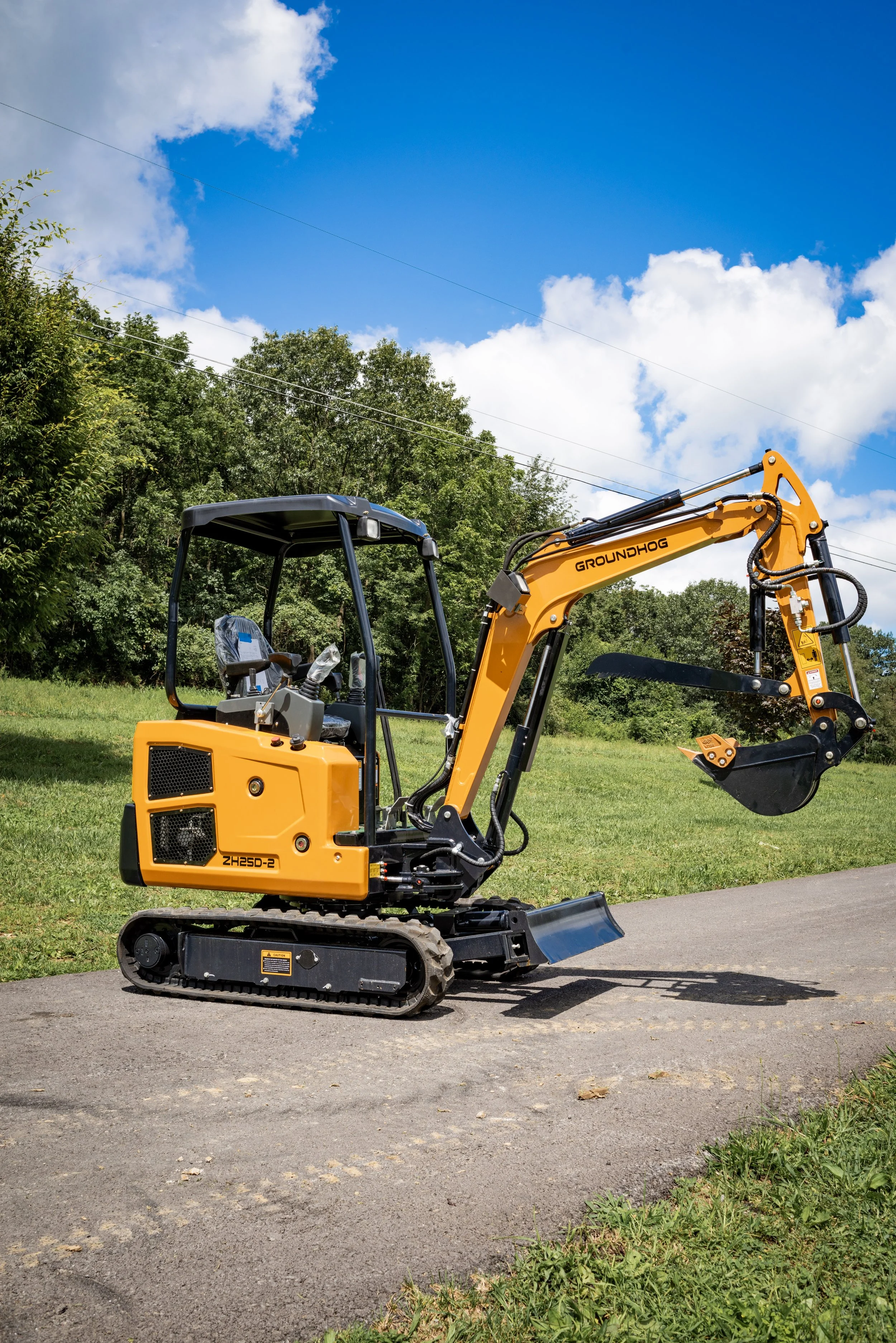 All ZH25D-2 models come equipped with a 25 HP Kubota D1105, hydraulic thumb, auxiliary hydraulics, 4 post canopy, blade with edge and curl protection, oil cooler, hydraulic joysticks, glow plugs, side swing boom, and Eaton drives.